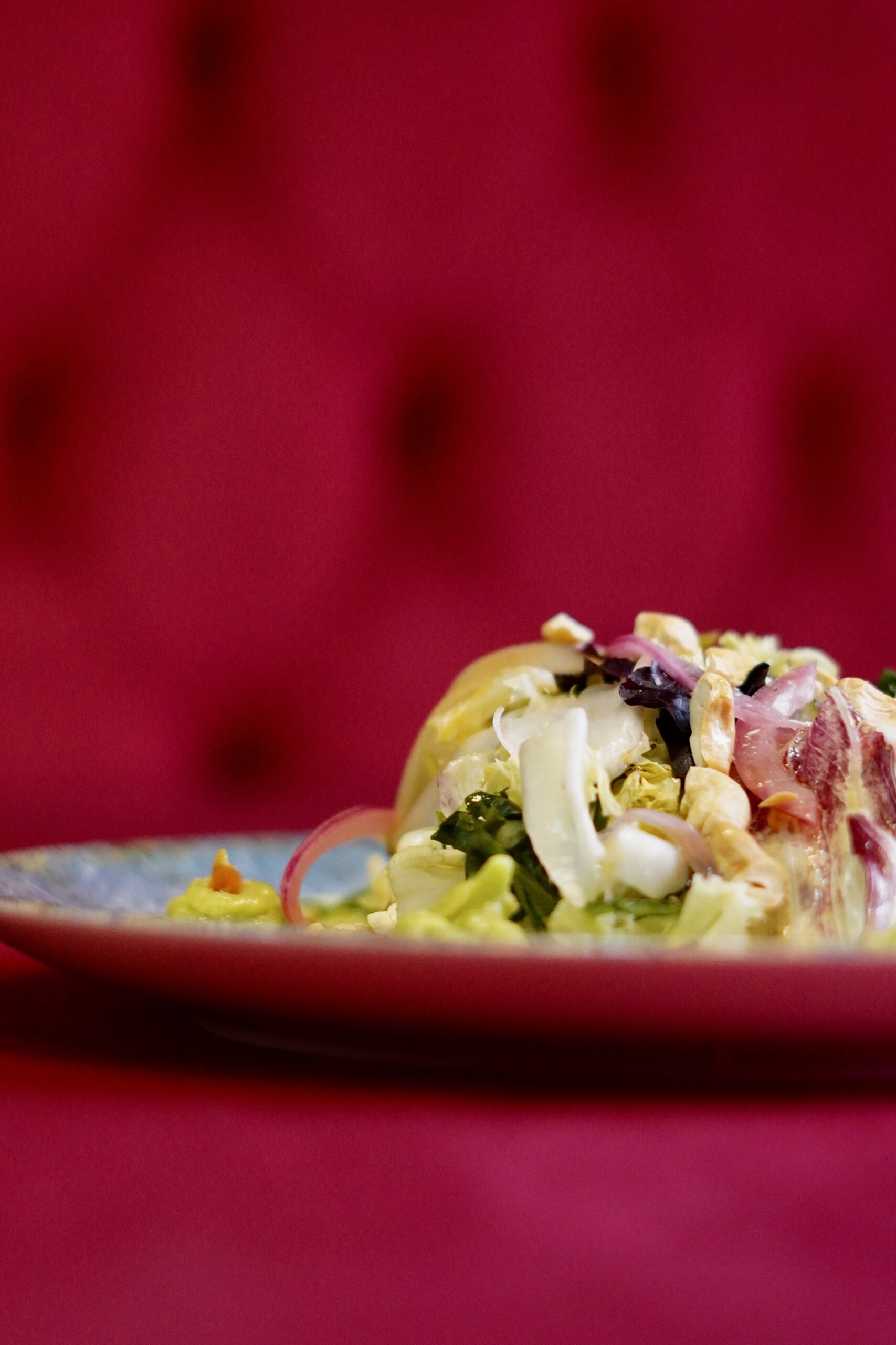 15€Con puntos de guacamole, emulsión de olivas, encurtidos de manzana verde y cebolla morada, anacardos.